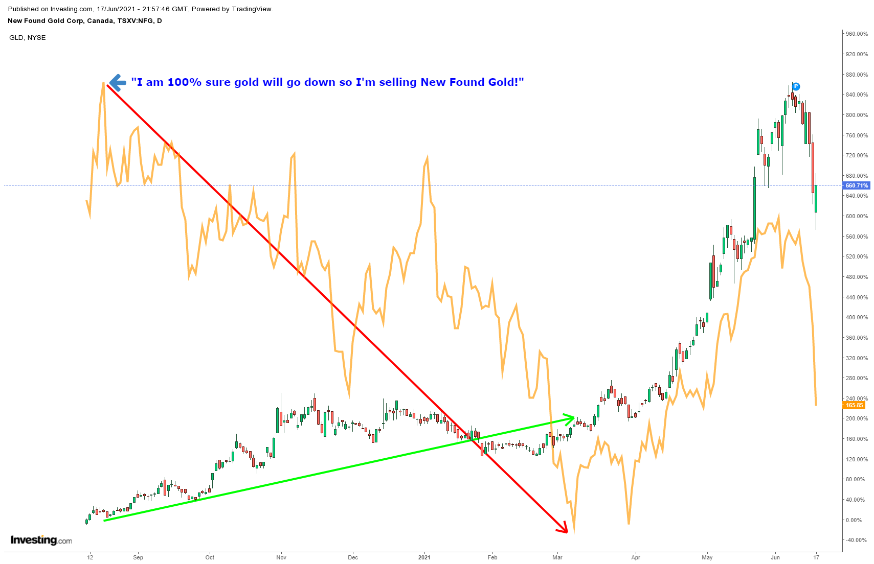 One of the best and most recent examples of why I think ALPHA investing is superior to BETA is New Found Gold. Even if one KNEW that gold was 100% going to go down quite a bit over several months, and one would have sold New Found Gold as a result, one would have missed out on a 180% return:
