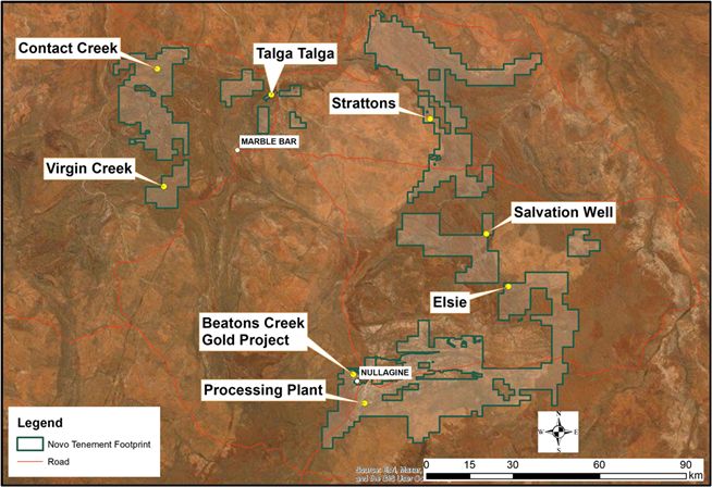 Novo is commissioning its flagship Beatons Creek gold project while exploring and developing its prospective land package covering approximately 14,000 square kilometres in the Pilbara region of Western Australia. In addition to the Company’s primary focus, Novo seeks to leverage its internal geological expertise to deliver value-accretive opportunities to its shareholders. For more information, please contact Leo Karabelas at (416) 543-3120 or e-mail [email protected].