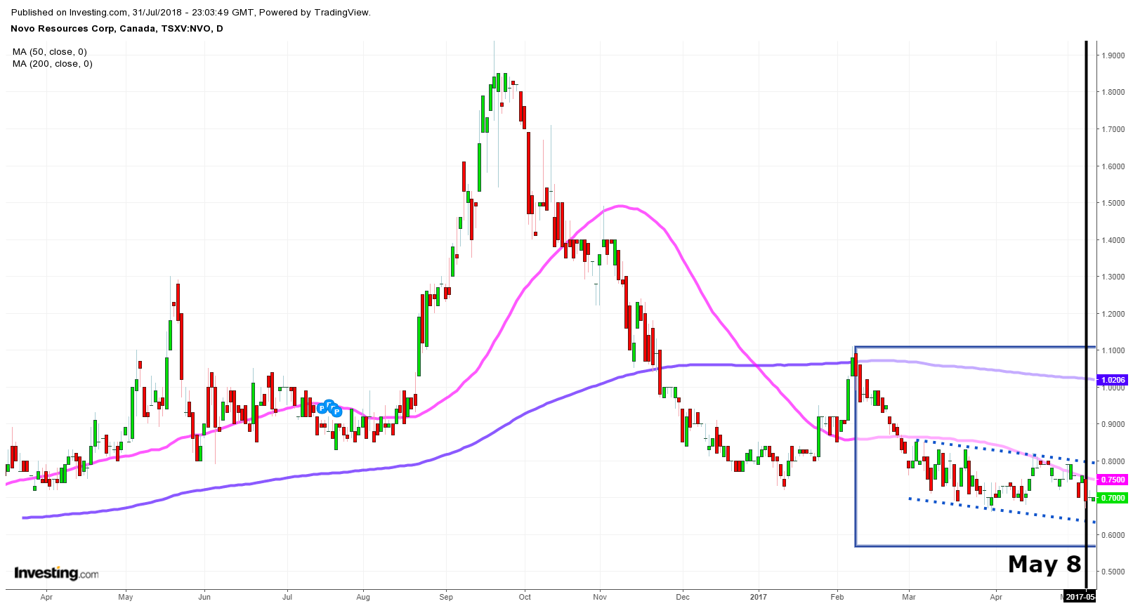 Thanks to Bob Moriarty’s early insight and steadfast support of Novo, starting in 2012 I built a core position of 80,000 NSRPF shares at an average price around 60¢. My last purchase was in May of 2017 at 51¢. We know the subsequent history through August through October of that year, during which rise I did not sell any Novo shares. Starting with the drop beginning in November, 2017, I began adding shares. The additional 20,000 shares that I purchased have an average cost around current market prices. I expect to add more NSRPF shares as possible while meeting other commitments, depending on price, and have little inclination to sell at all, at least until we are looking at many multiples of current prices.