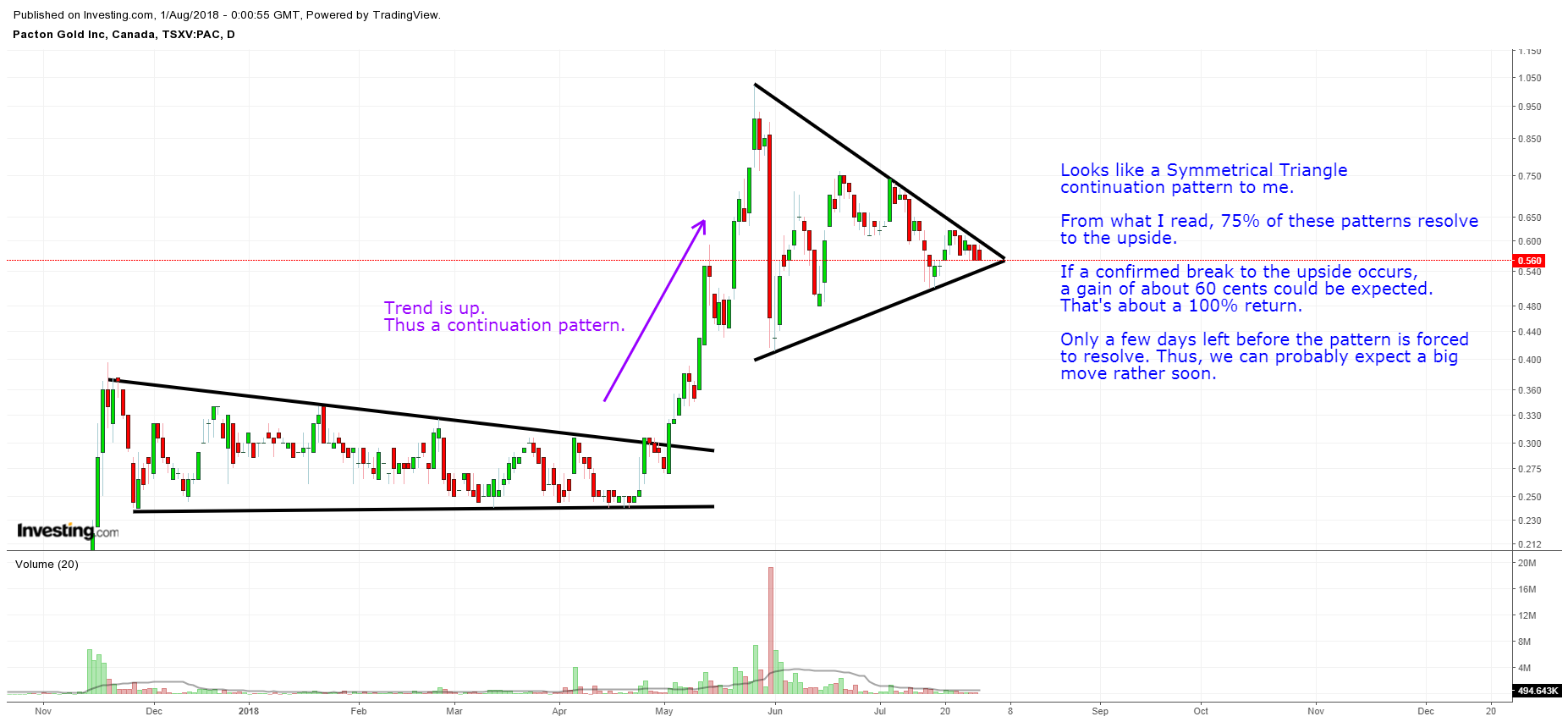 - This is what the Pacton Gold log chart looks like today: