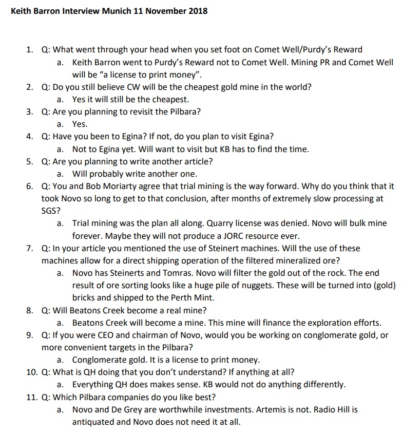 Here is the exchange (Keep in mind that this was before the Comet Well ore sorting results blew out expectations, to the upside):